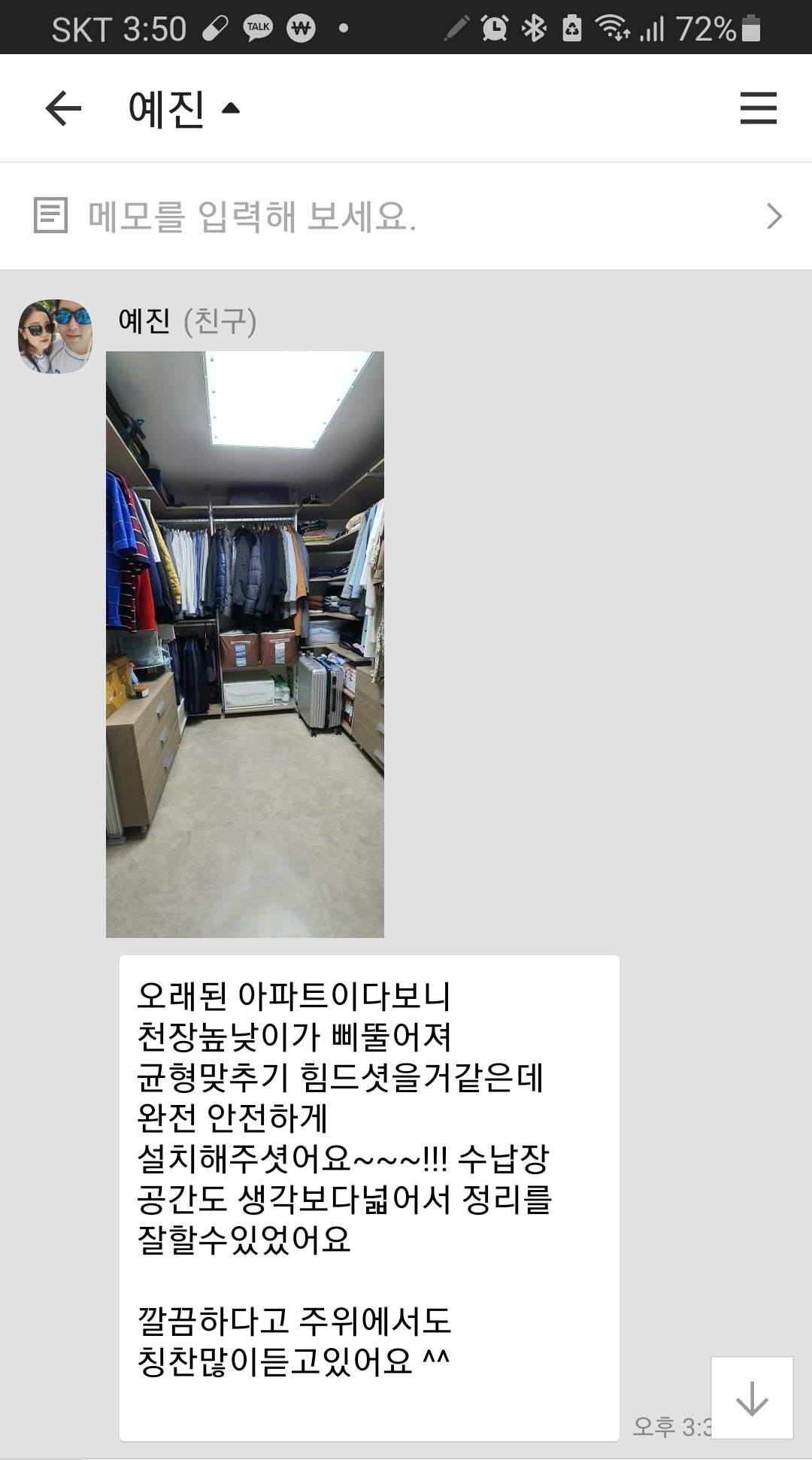 서울 송파구 장미아파트 윤*진 고객님의 카카오톡 채널 후기입니다.