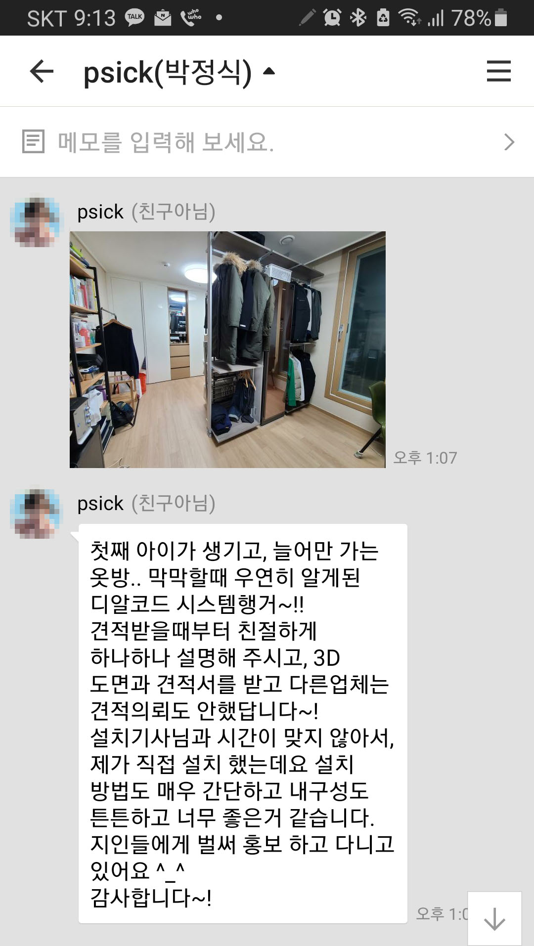 원주시 코아루미소지움아파트 박*식 고객님의 카카오톡 채널 후기입니다.