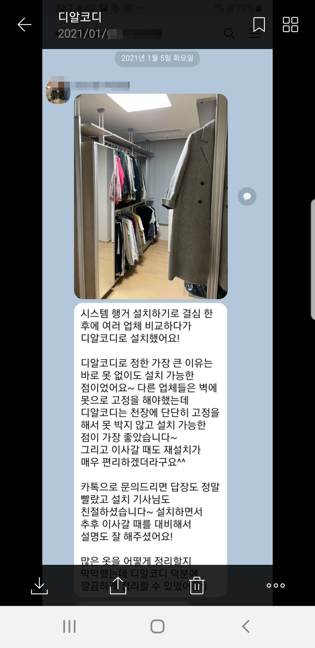 분당 정자동 3차 푸르지오시티 박*성 고객님의 카톡후기입니다