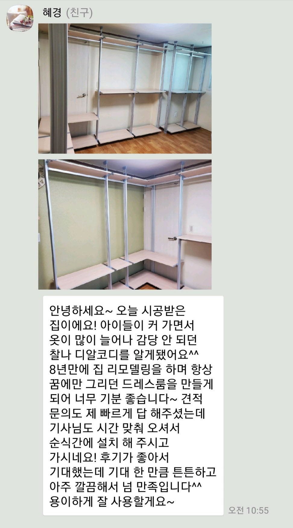 대구 북구 화성그랜드파크 홍혜경 고객님의 카카오톡 채널 후기입니다.