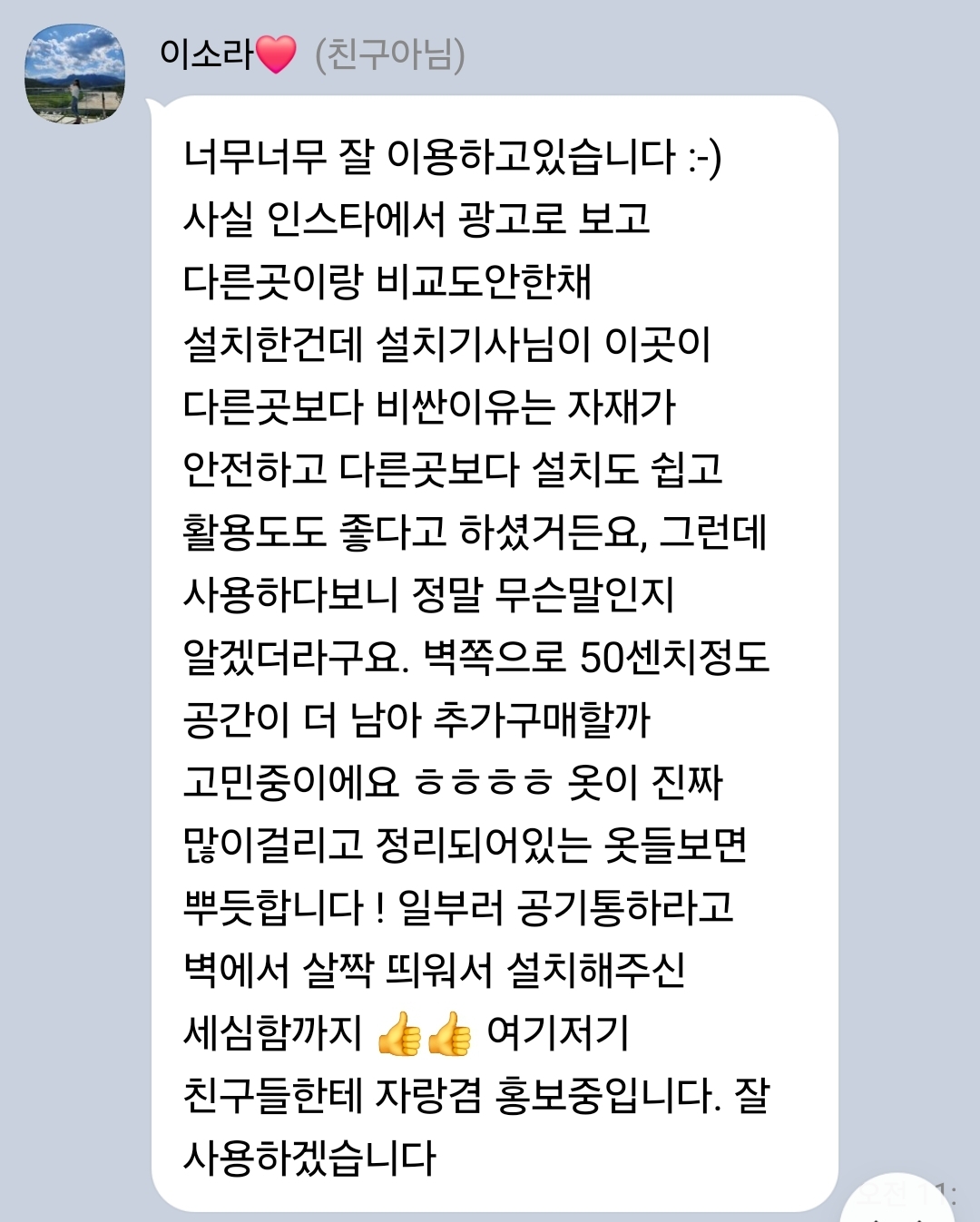 강릉시 산양길 이*소라 고객님의 카카오톡 채널 후기입니다