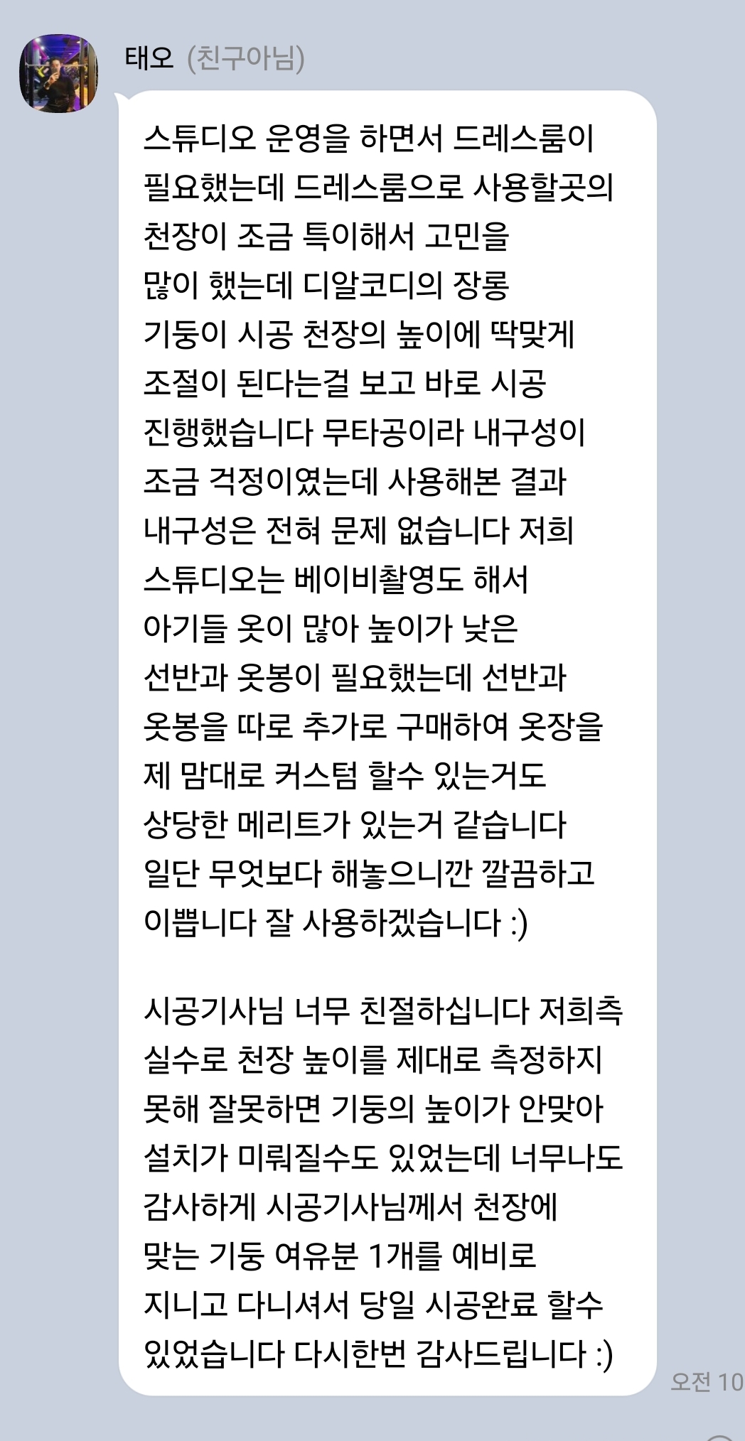 창원시 마산합포구 장장군로 김*오 고객님의 카카오톡채널 후기입니다.