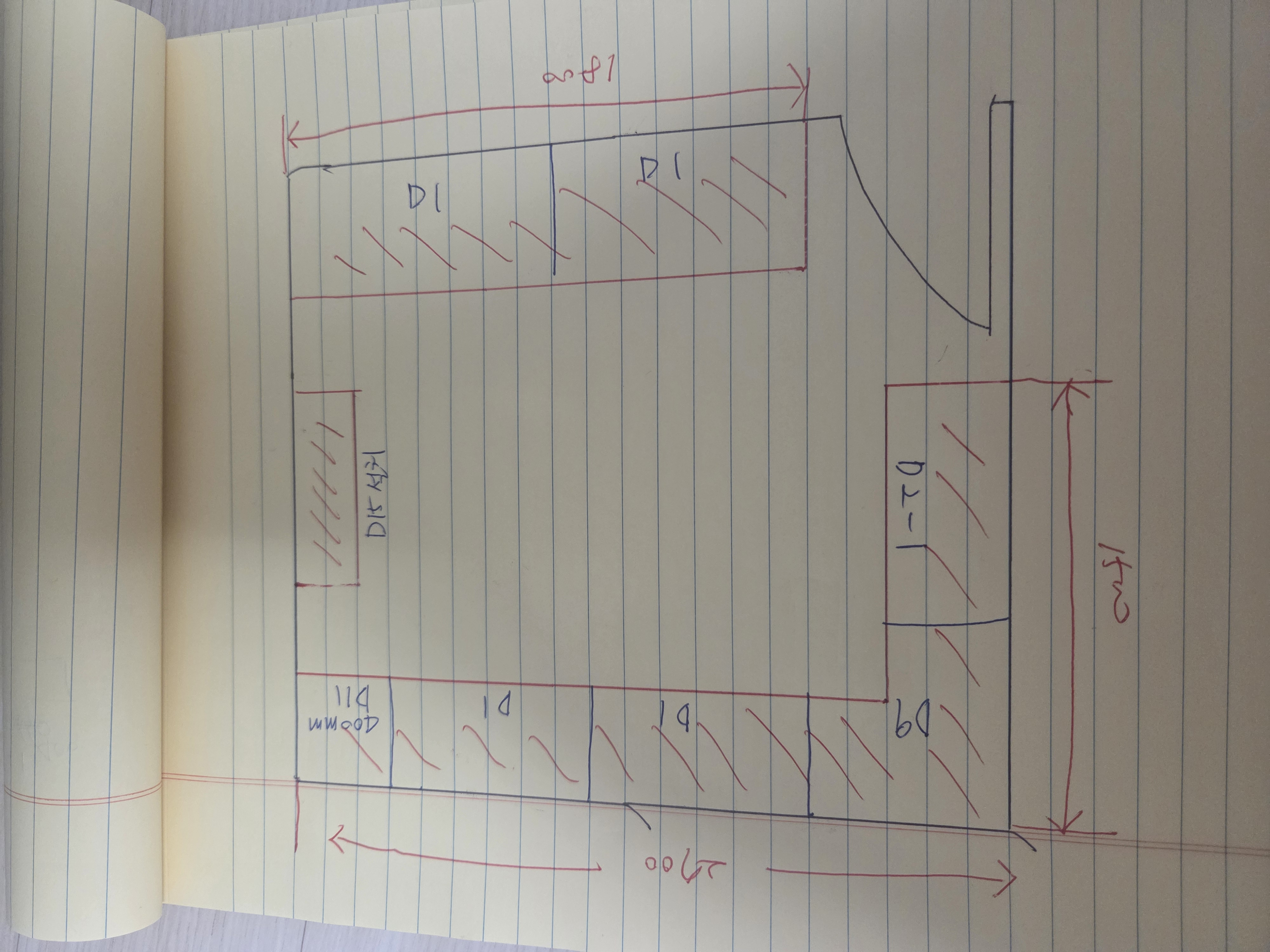 1번: 1500mm 2번: 2700mm 4번: 1800mm 천장 높이: 2300mm