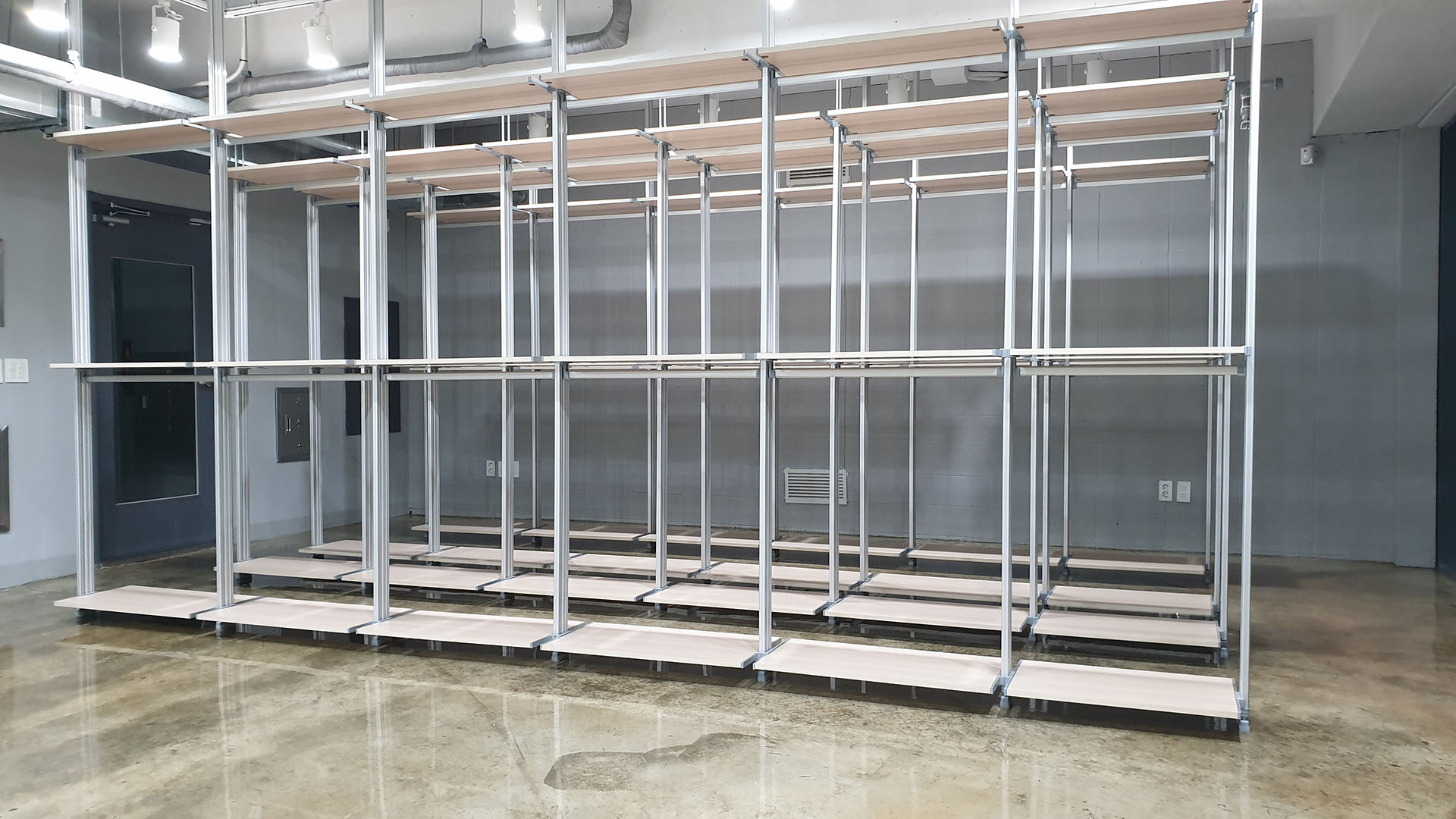 디알코디 드레스룸은 천장고정 방식입니다. 못하나 박지 않고도 이처럼 건물 중앙에  튼튼하게 설치할 수 있습니다.