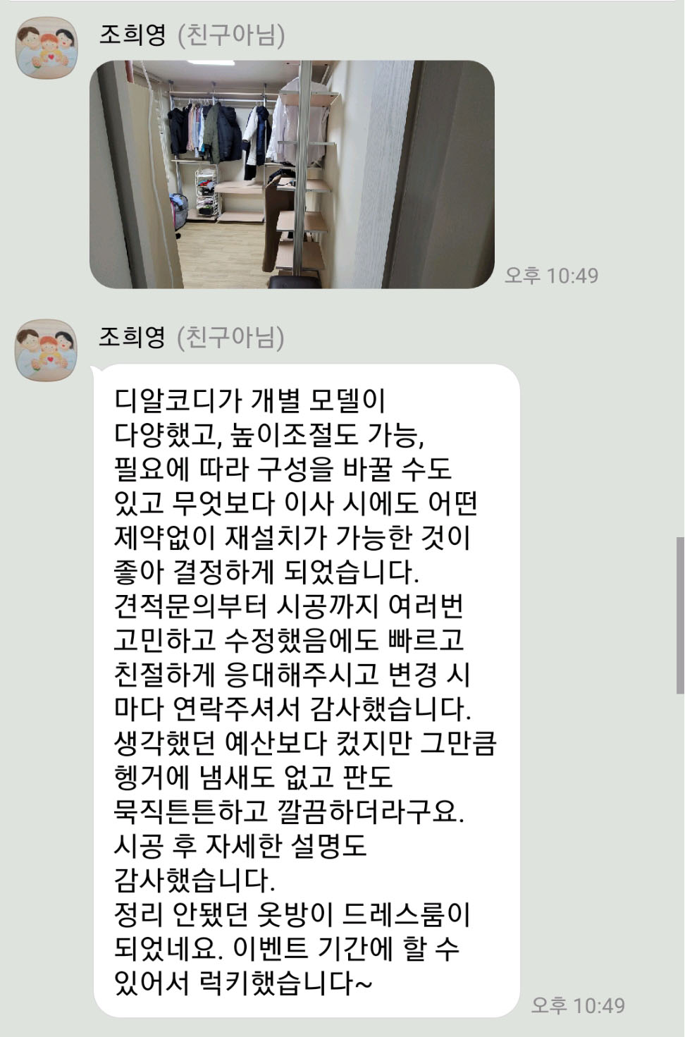 동작구 대방주공2단지 조*영 고객님의 카카오톡 채널 후기입니다