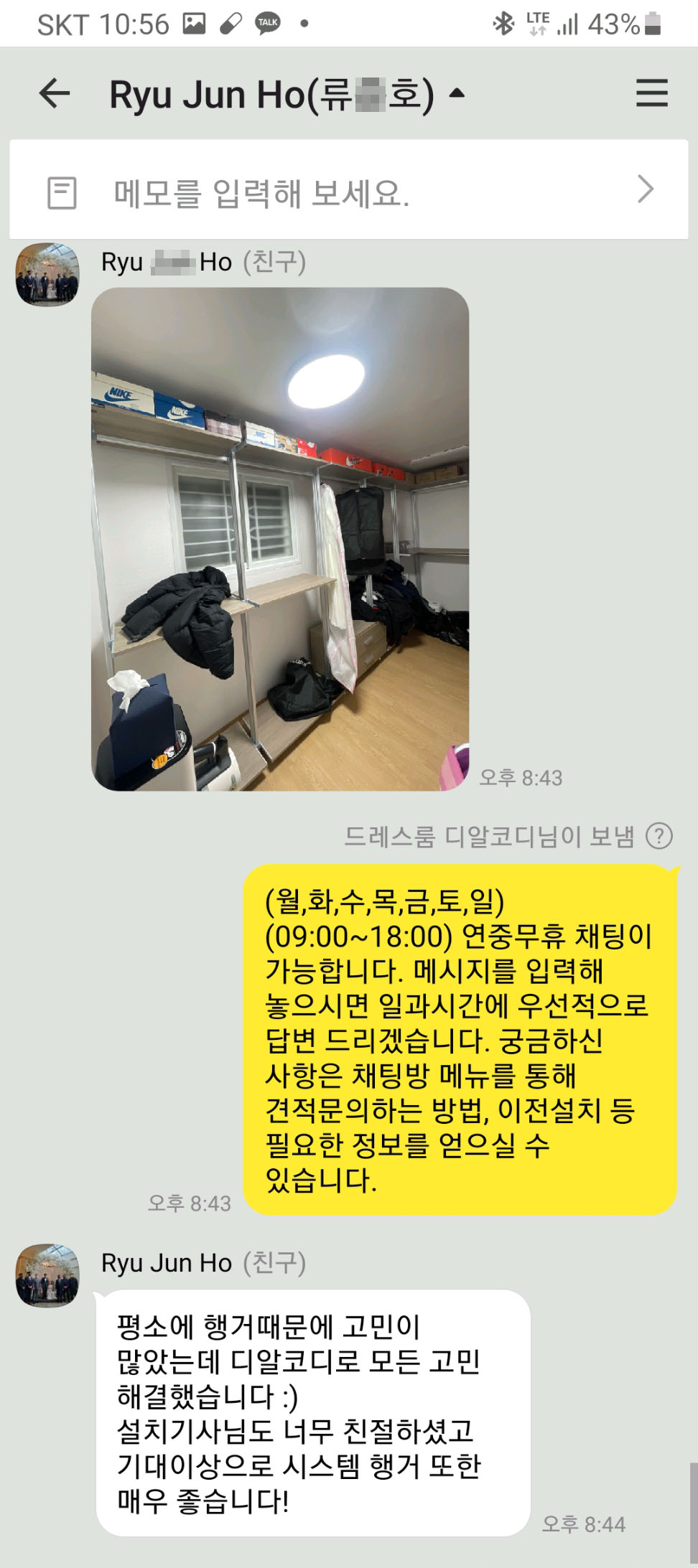 서울 노원구 태강아파트 류*호 고객님의 카카오톡 채널 후기입니다.