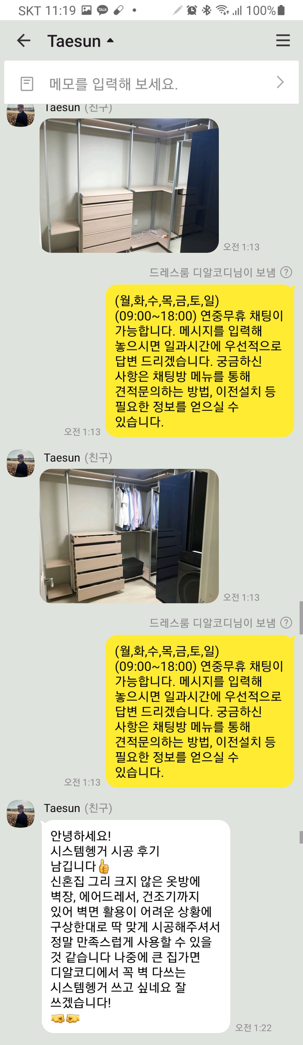 서울 구로구 경인로 643 신도림2차 동아아파트 김태선 고객님의 카카오톡 채널 후기입니다.