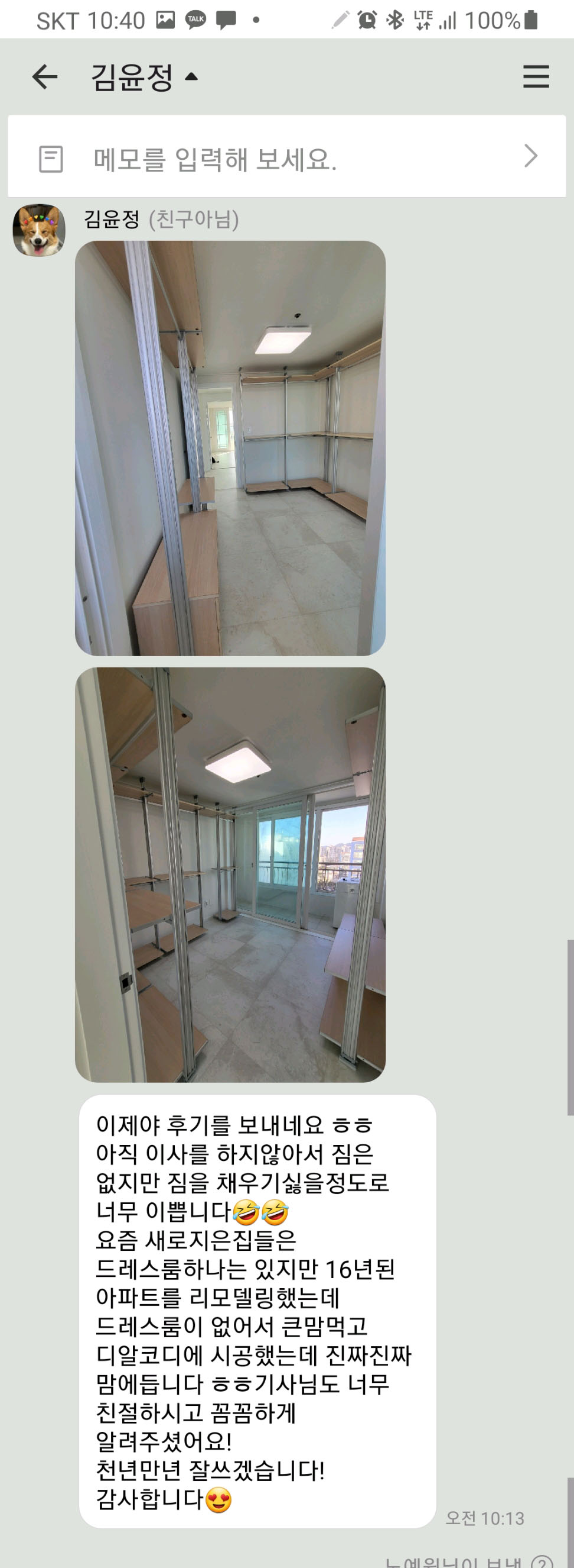 안성시 공도읍 쌍용스윗닷홈 김윤정 고객님의 카카오톡 채널 후기입니다.