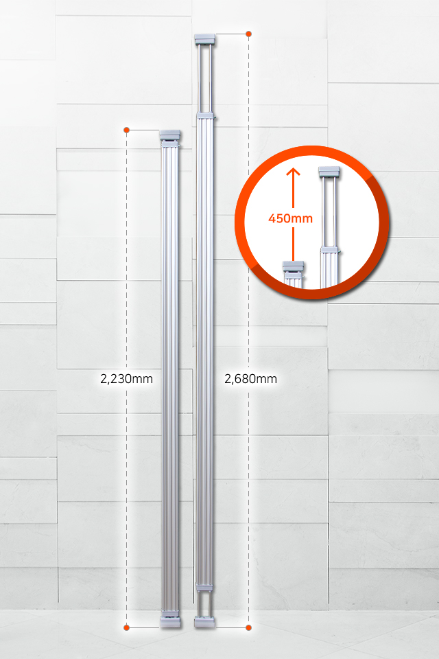 디알코디 메티스 드레스룸 기둥은 익스텐션형입니다. 최대 450mm까지 길이가 늘어납니다.