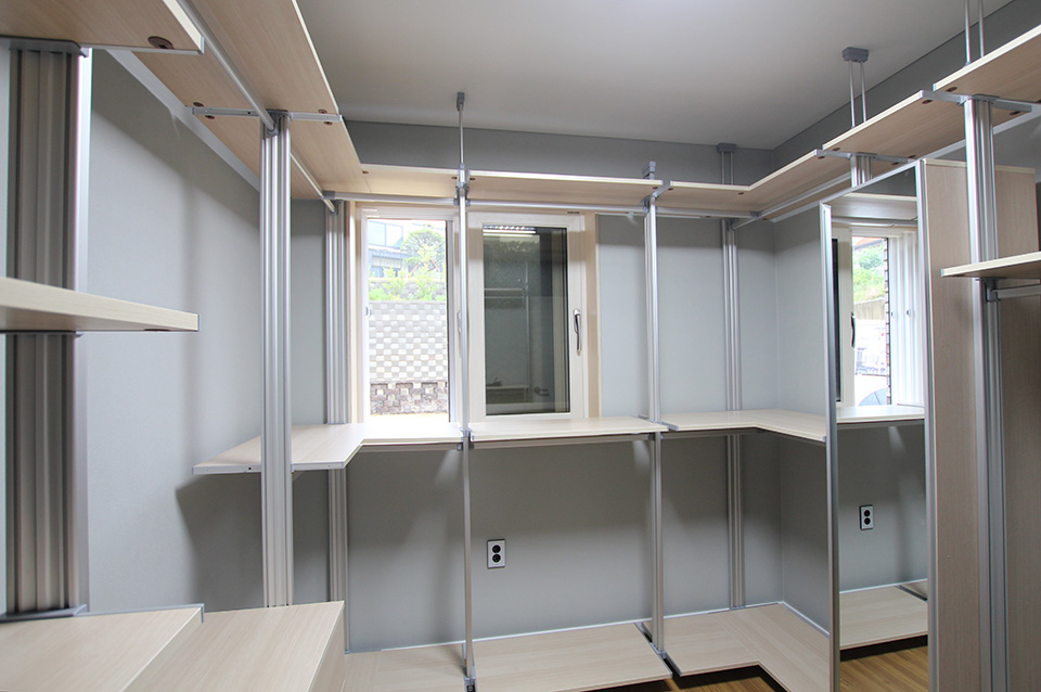 예를 들자면 지금 사는 아파트에 드레스룸을 설치했다가 천정 높이가 높은 전원주택으로 이사를 갈 경우에